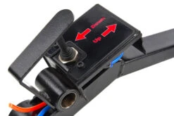 Je schakelt de tester snel uit en aan door middel van een rode knop aan de voorzijde. Daarbij beveilig je beide klemmen door deze na het werk aan de haken te hangen, die aan de zijkant van de tester zitten. Zo neemt het systeem weinig plaats in en vervoer je het ook veiliger.